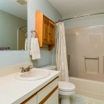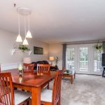 Beautiful new kitchen with recessed lighting, newly refurbished Shaker style white cabinets with brushed nickel pulls and attractive granite countertops with breakfast bar. New stainless steel microwave, range, sink and hardware. Open-concept living and dining rooms enjoy bright, warm southwest exposure, fresh paint and recent carpeting. Gas fireplace and direct access to 18 ft X 11 ft new composite deck overlooking level common grounds with forest views. Half bath completes the first floor. Upstairs you’ll find two vaulted ceiling bedrooms each with their own full bath and recent carpeting. Finished walkout lower level has a storage area, and family room with handcrafted wooden bar with brass rail. New septic system. Recent roof, vinyl siding and deck.