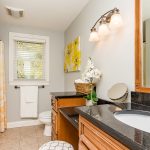 Beautiful eat-in kitchen, 4 bedrooms, 2.5 modern baths, finished walkout basement, 2 car attached garage, central air, and hardwood and tile flooring throughout the main living levels! 19 ft X 14 ft kitchen features antique-white cabinetry with granite counters, limestone backsplash, stainless steel appliances, and slider to private deck. 22 ft X 13 ft fireplaced family room. Adjoining formal living and dining rooms. Hardwood stairs lead to master bedroom with en suite and 10 ft X 5 ft walk-in closet. 2nd full bath and 3 other spacious bedrooms complete 2nd floor. Lower level has 27 ft X 23 rec room, separate exercise room, bonus area with built-in cabinets with tile countertops – makes a super home office, or homework/craft room.
